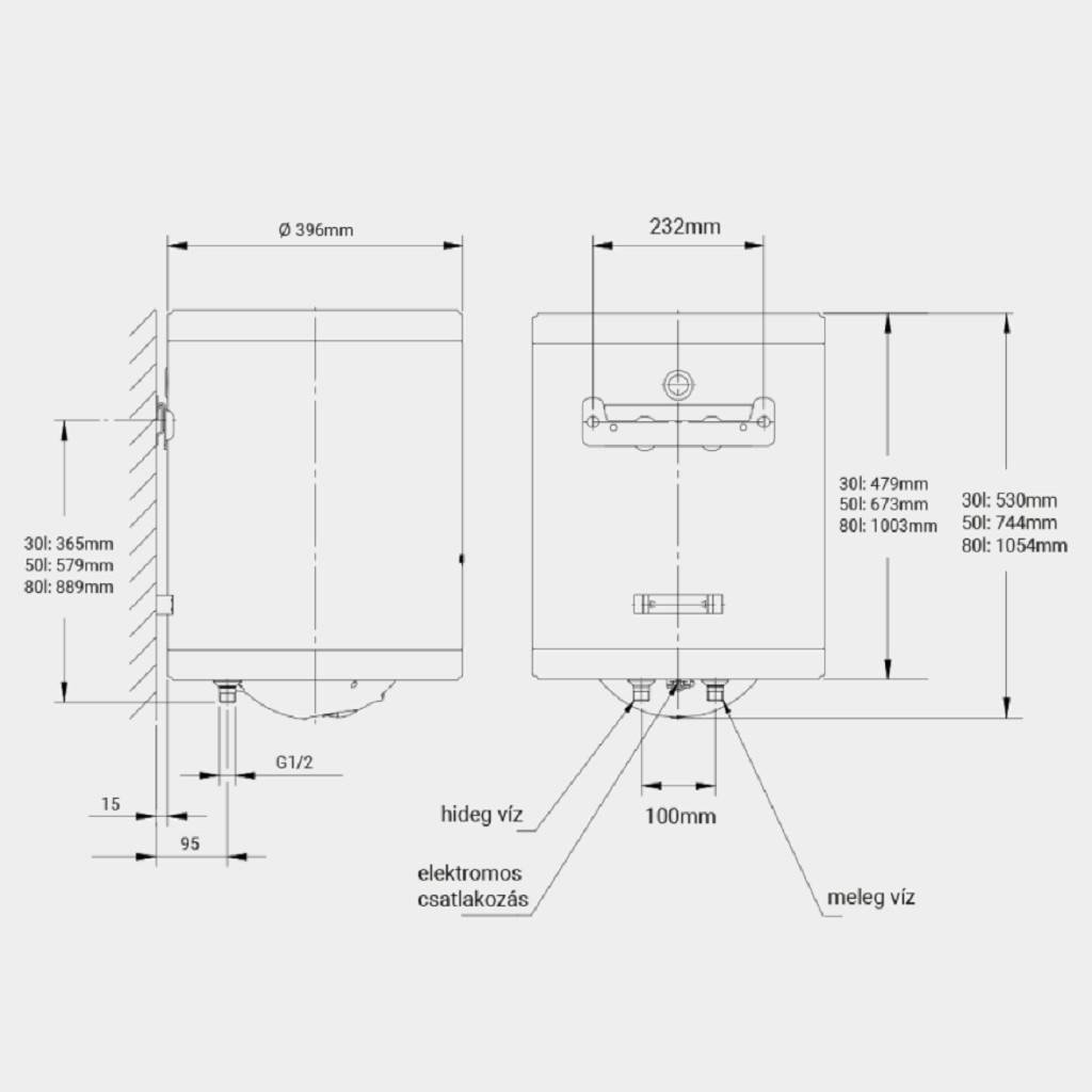 3. Fali függőleges kiviteleű elektromos zártrendszerű forróvíztárolók 30L-200L