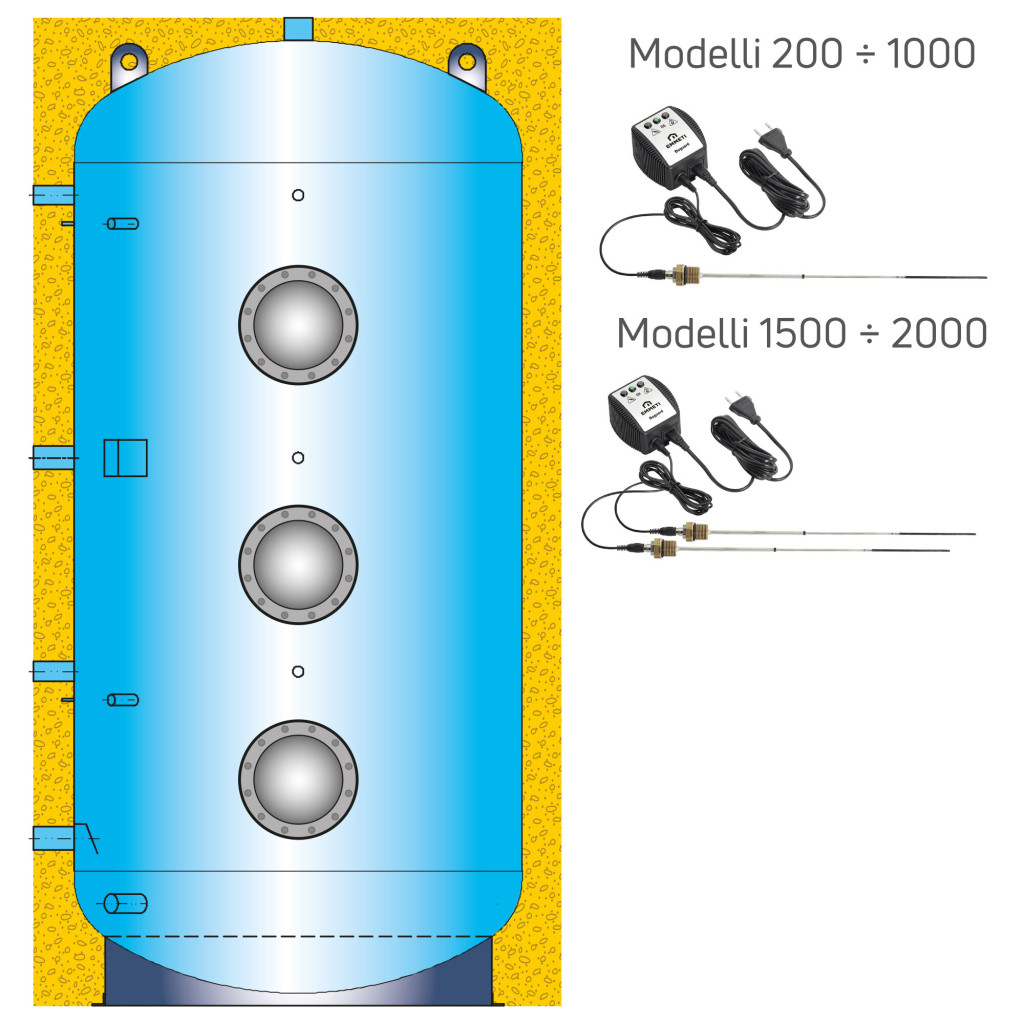 - A tárolótartály maximális üzemi nyomása: 10 bar (200 - 300 - 500 - 750 - 1000 modellek) vagy 8 bar (1500 - 2000 - 3000 modellek)