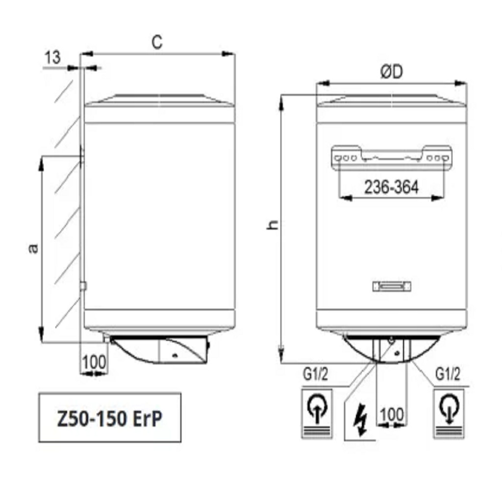Hajdu Z120 ErP villanybojler, zártrendszerű fali függőleges kivitel. Tűzzománc bevonatú acéllemez tartállyal és magnézium aktív anóddal.